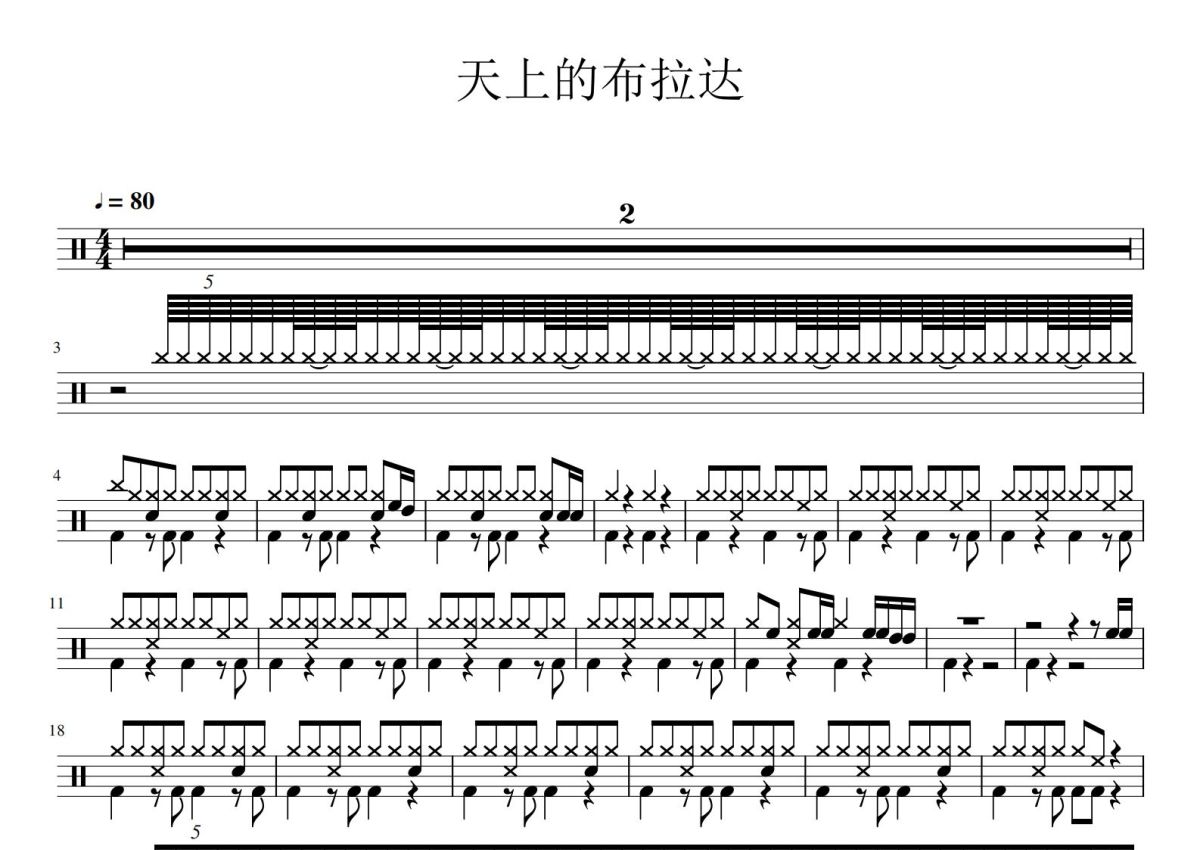 儿歌《天上的布拉达》鼓谱 - 架子鼓谱