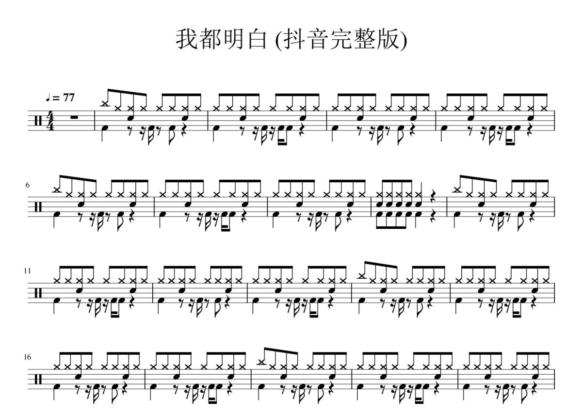 赵偲钰《我都明白》鼓谱 - 架子鼓谱 - 抖音完整版