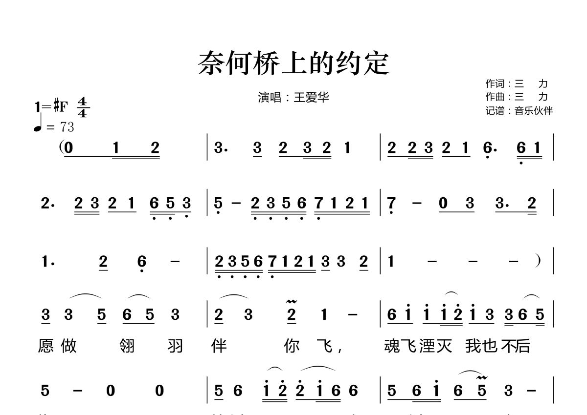 《奈何桥上的约定》是王爱华演唱的一首歌曲,这份简谱共有两张高清图谱,图谱由 @音乐伙伴 编配上传。