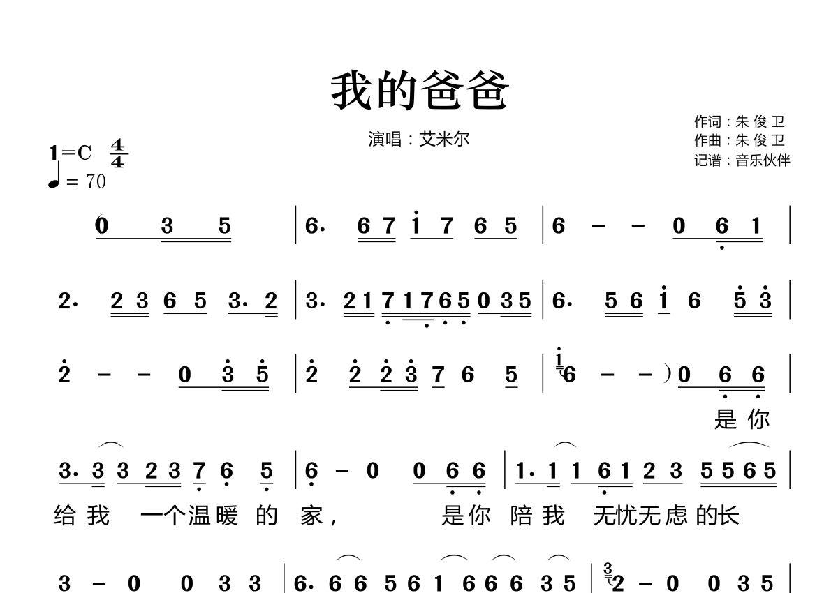 《我的爸爸》是艾米尔演唱的一首歌曲,这份简谱共有两张高清图谱,图谱由 @音乐伙伴 编配上传。