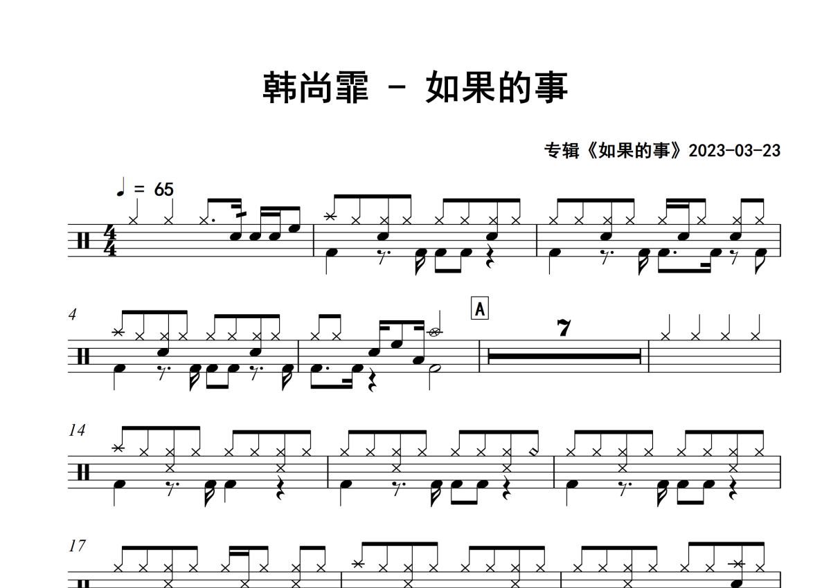 韩尚霏《如果的事》架子鼓谱