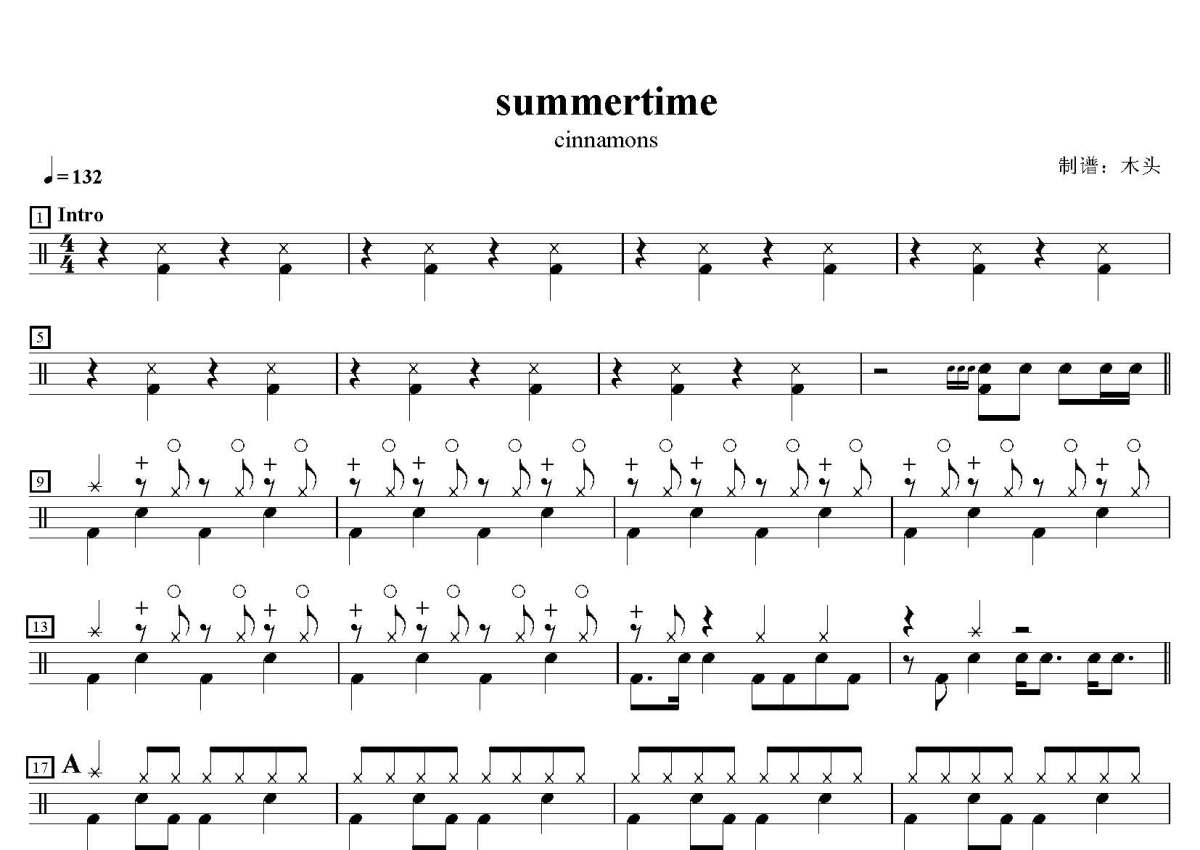 cinnamons《summertime》鼓谱 - 架子鼓谱