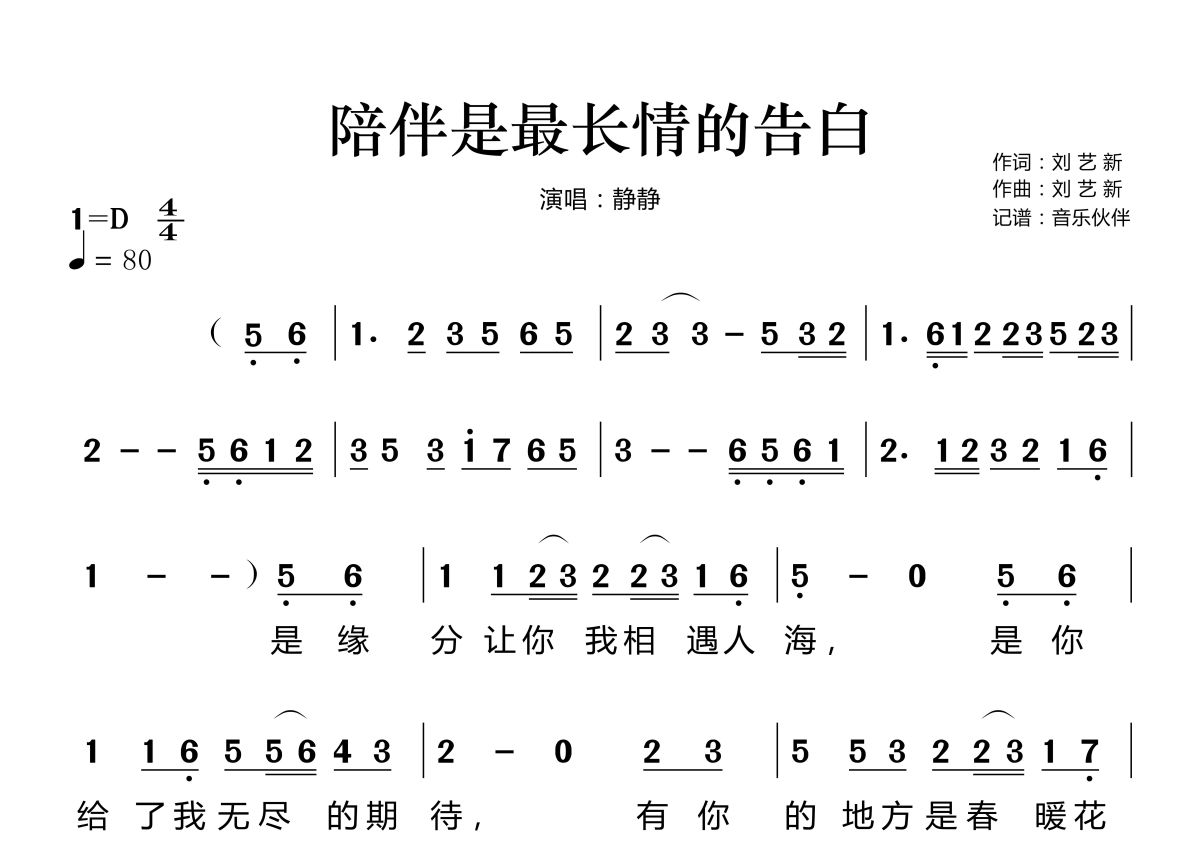 《陪伴是最长情的告白》是静静演唱的一首歌曲,这份简谱共有两张高清图谱,图谱由 @音乐伙伴 编配上传。