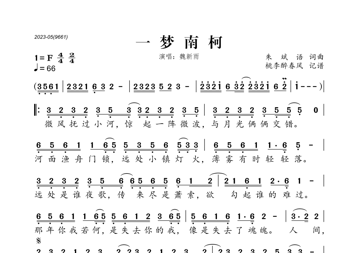 魏新雨《一梦南柯》简谱