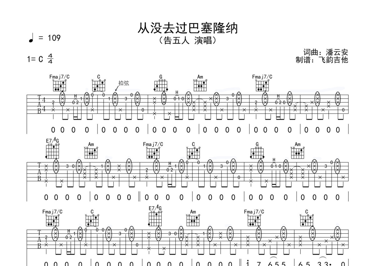 告五人《从没去过巴塞隆纳》吉他谱 - C调弹唱六线谱