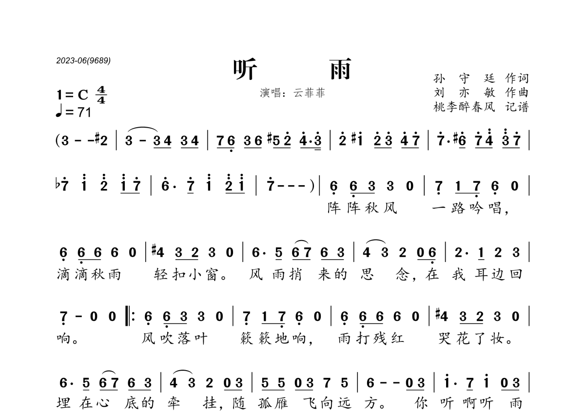 云菲菲《听雨》简谱