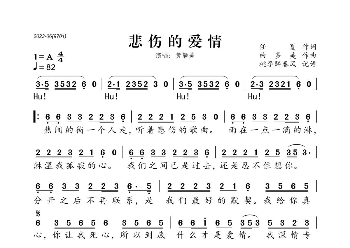 黄静美《悲伤的爱情》简谱