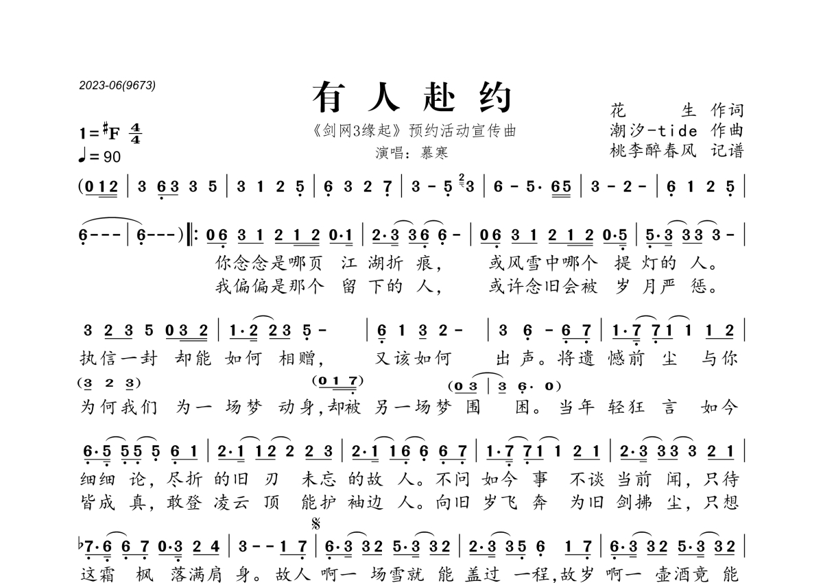 《有人赴约》是慕寒演唱的一首歌曲,拍号为4/4拍,这份简谱共有一张高清图谱,图谱由 @桃李醉春风 编配上传。