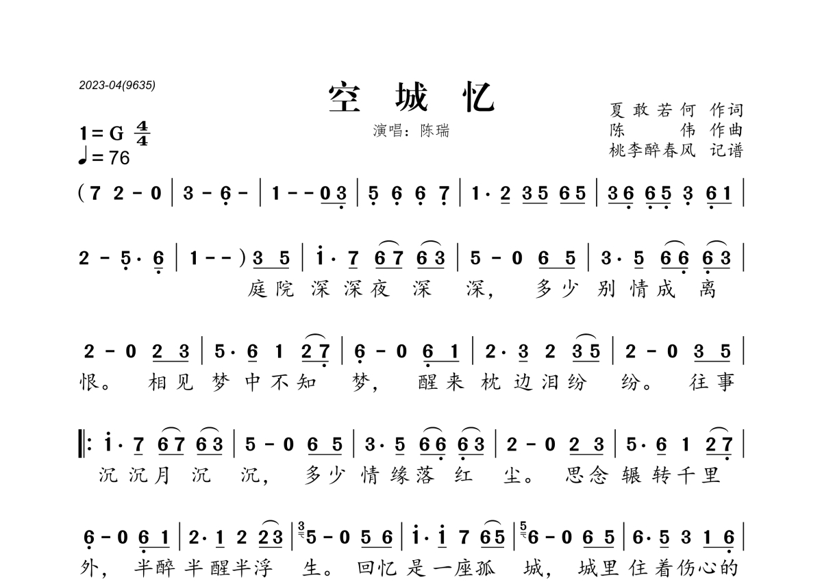 陈瑞《空城忆》简谱