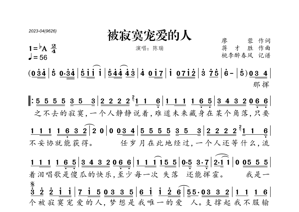 被寂寞宠爱的人简谱 - 陈瑞演唱