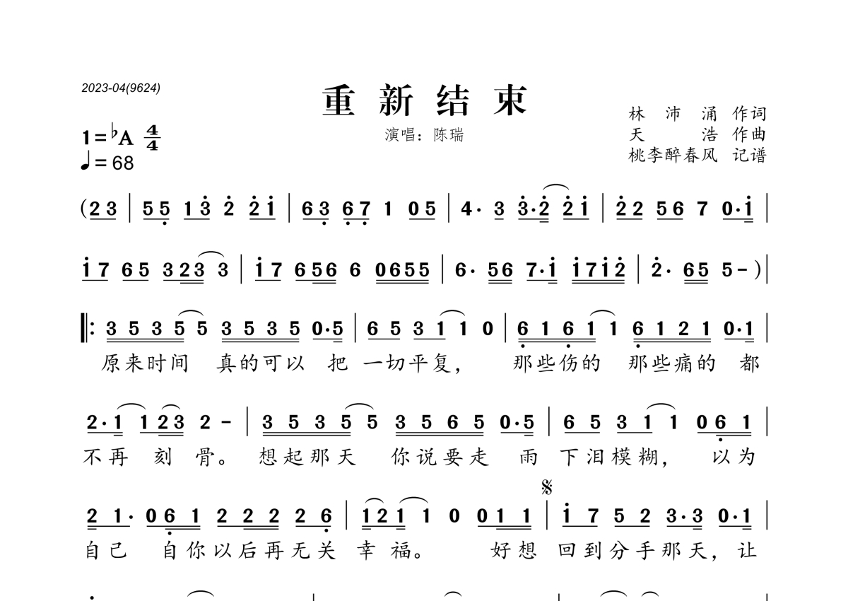陈瑞《重新结束》简谱