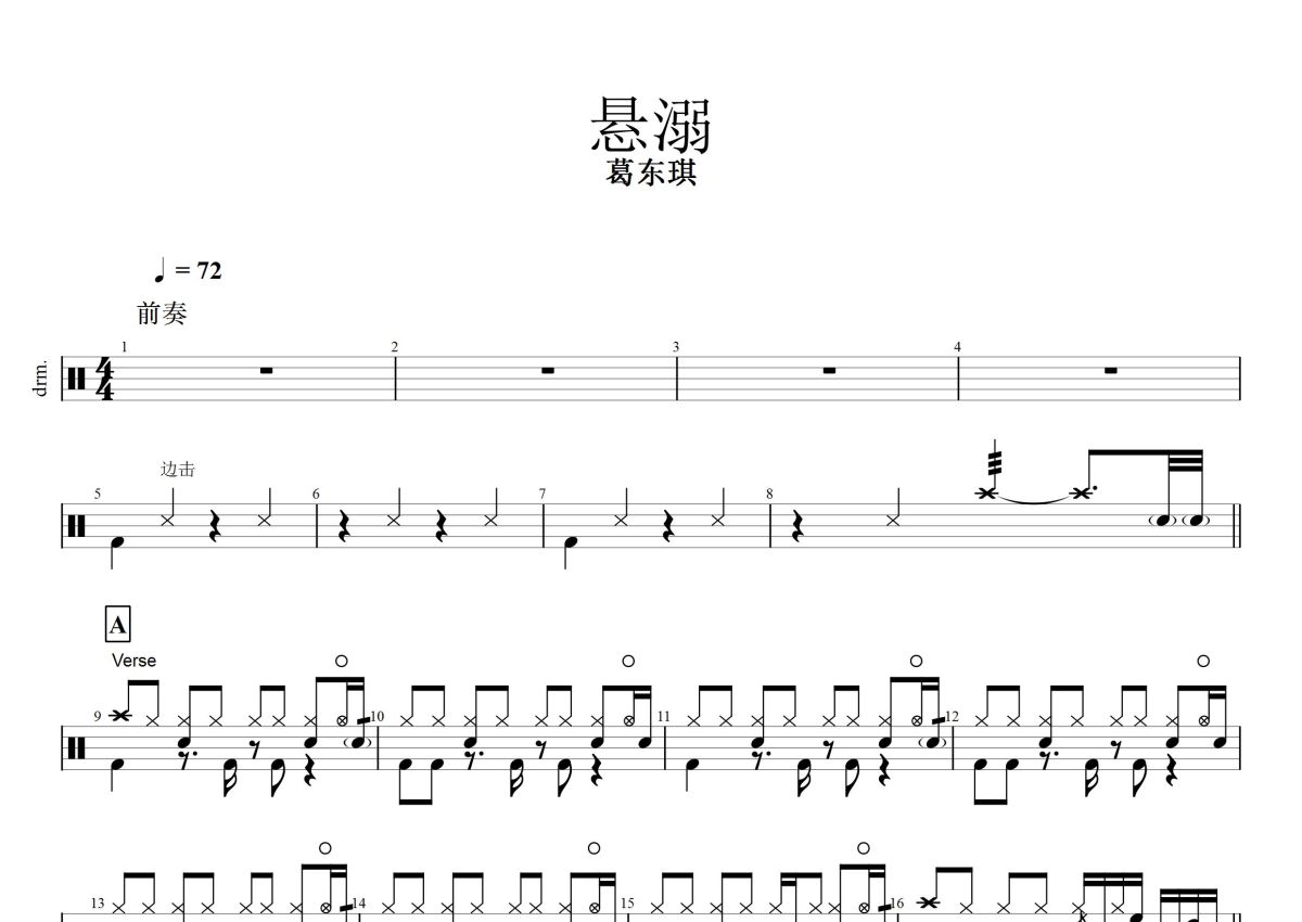 葛东琪《悬溺》鼓谱 - 架子鼓谱