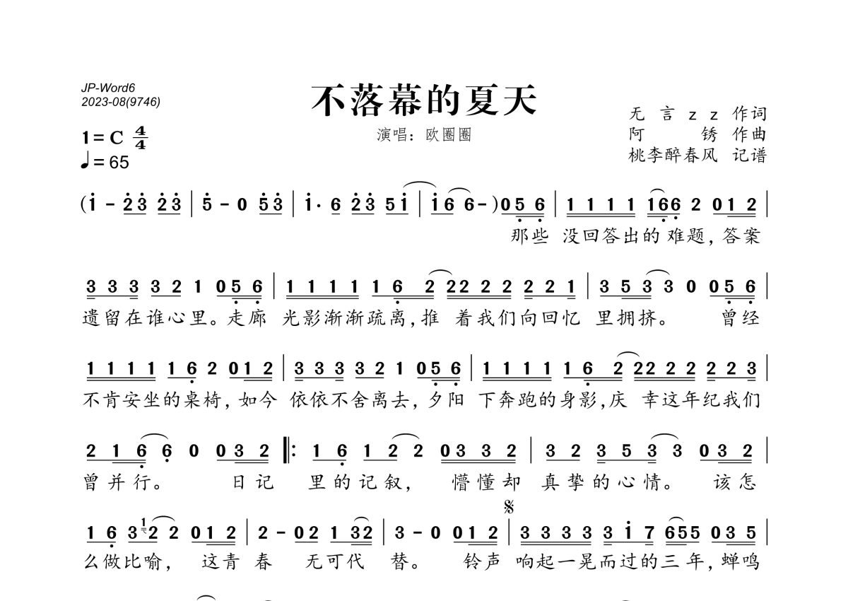 欧圈圈《不落幕的夏天》简谱
