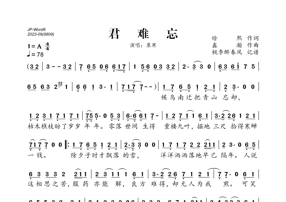 慕寒《君难忘》简谱