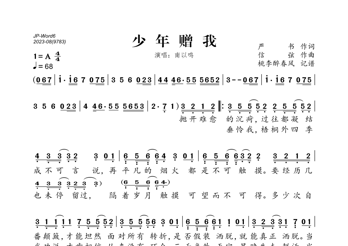 南以鸣《少年赠我》简谱