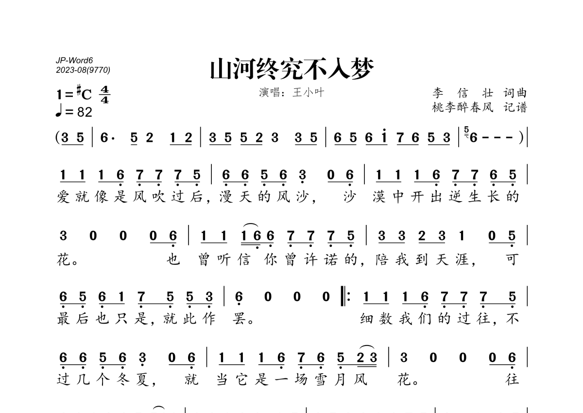 山河终究不入梦简谱 - 王小叶演唱