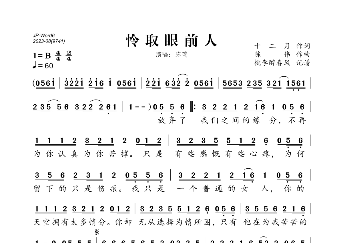 陈瑞《怜取眼前人》简谱