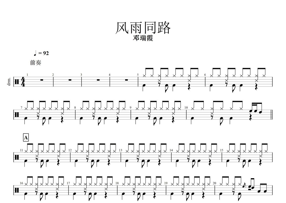 邓瑞霞《风雨同路》鼓谱 - 架子鼓谱