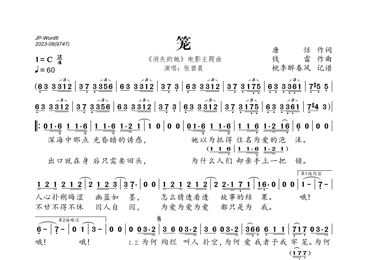 《笼》简谱