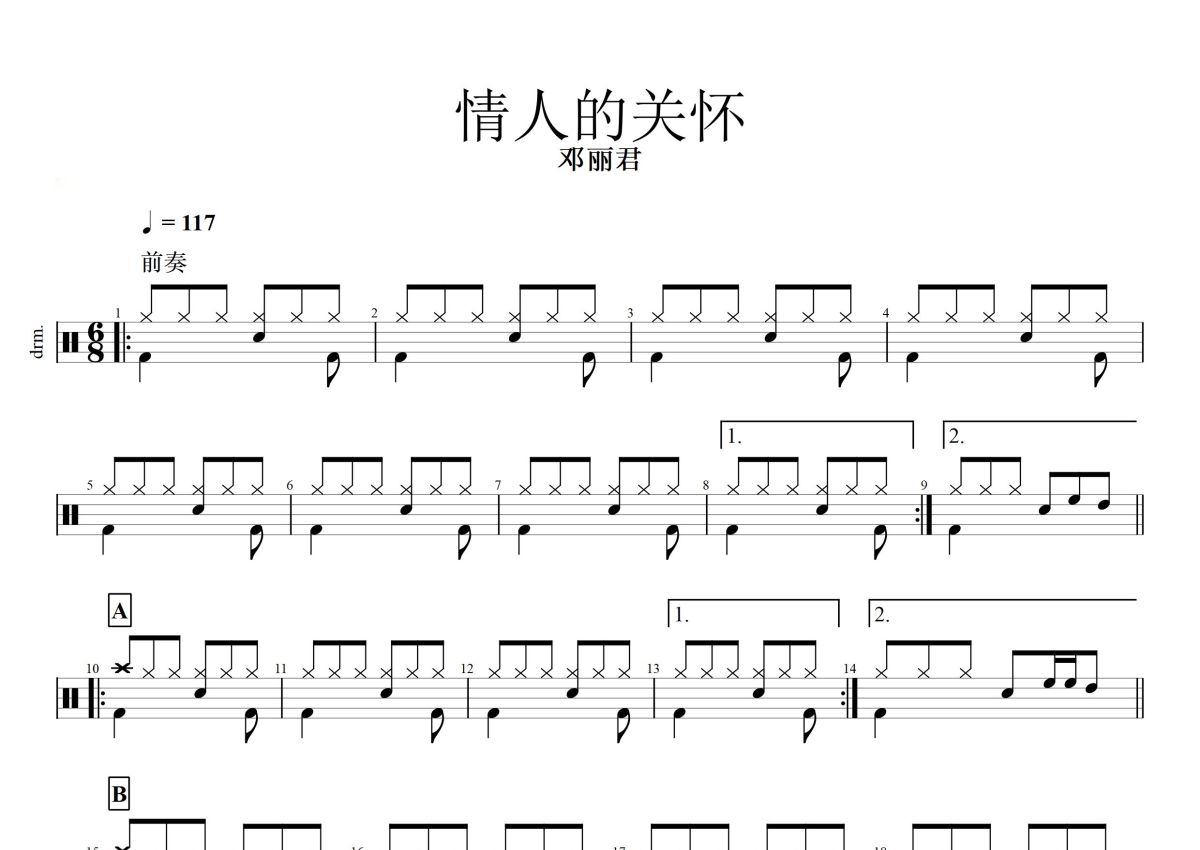 邓丽君《情人的关怀》鼓谱 - 架子鼓谱