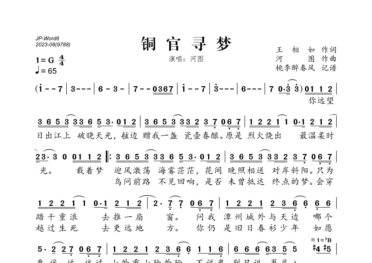 河图《铜官寻梦》简谱