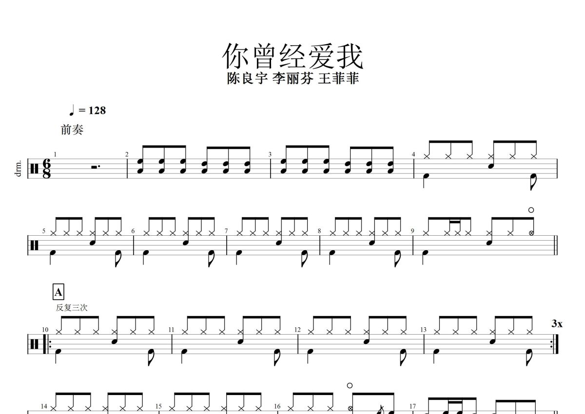 陈良宇/李丽芬/王菲菲《你曾经爱我》鼓谱 - 架子鼓谱