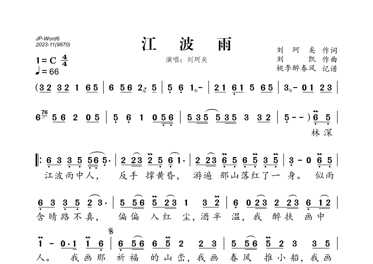 《江波雨》简谱