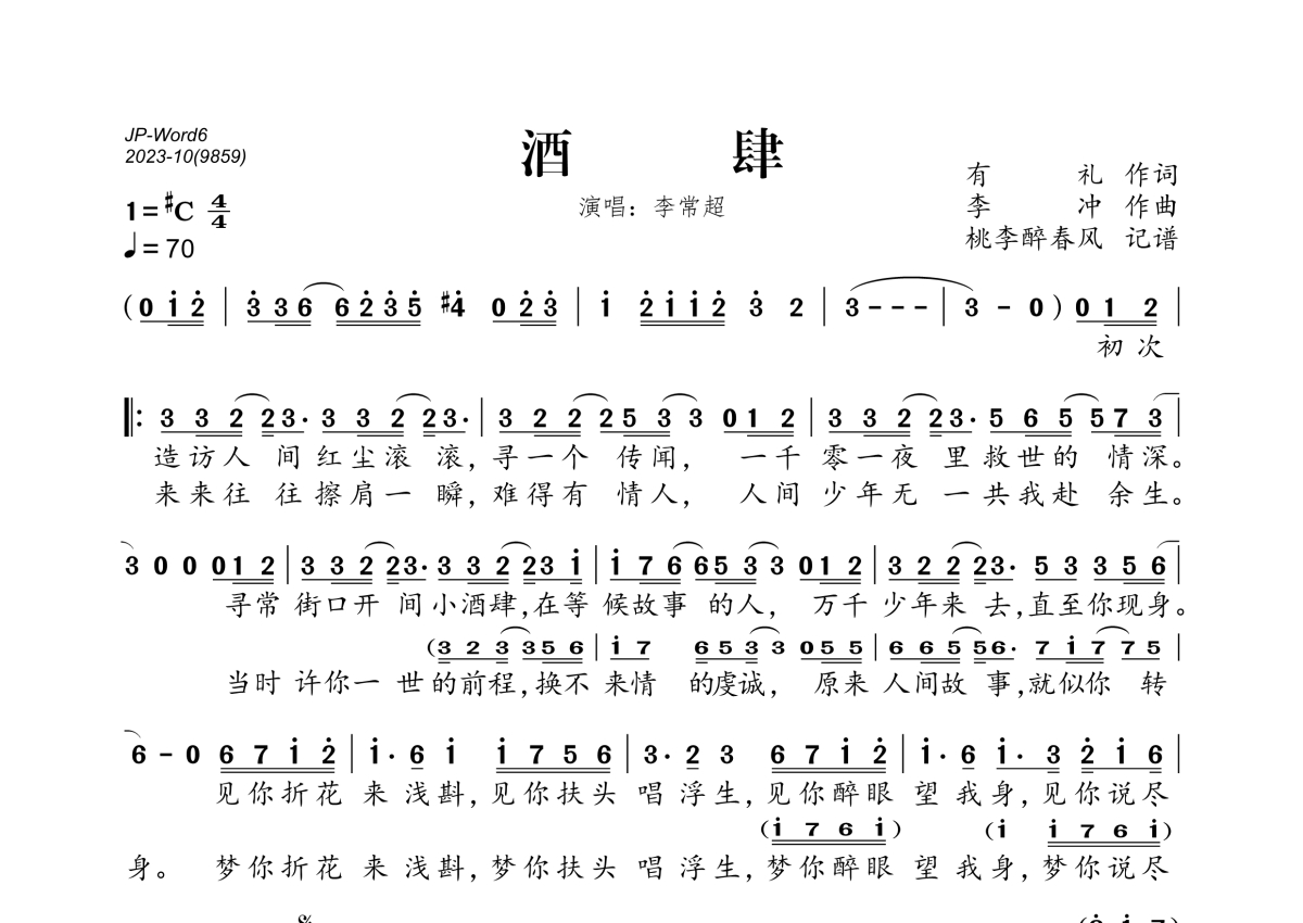 李常超《酒肆》简谱