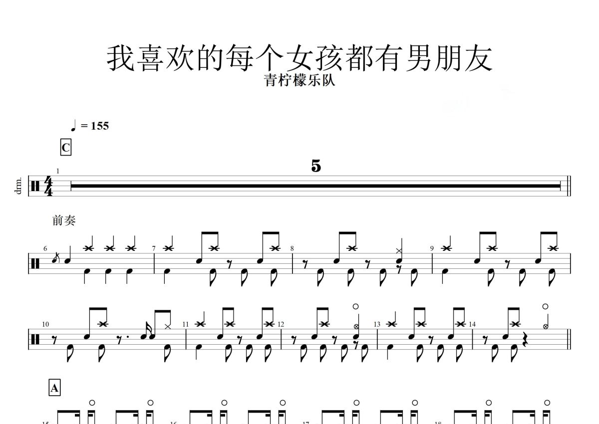 青柠檬乐队《我喜欢的每个女孩都有男朋友》鼓谱 - 架子鼓谱