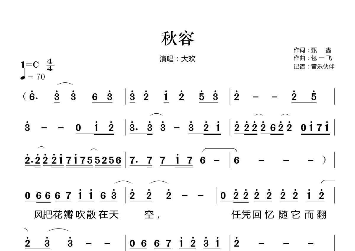 秋容简谱 - 大欢演唱
