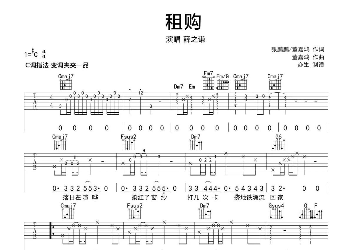 租购吉他谱 - 薛之谦 - C调弹唱六线谱