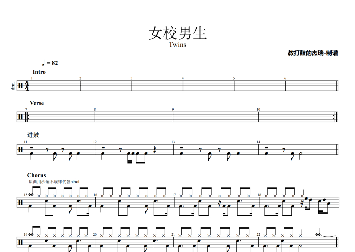Twins《女校男生》架子鼓谱