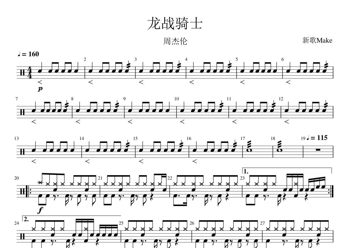 周杰伦《龙战骑士》鼓谱 - 架子鼓谱