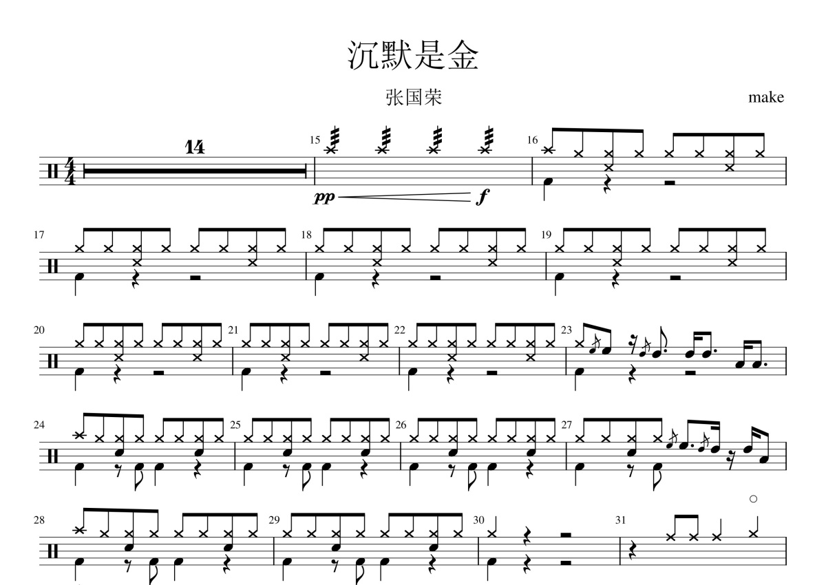 张国荣《沉默是金》鼓谱 - 架子鼓谱