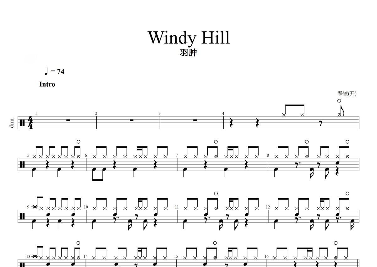 羽肿《Windy Hill》鼓谱 - 架子鼓谱
