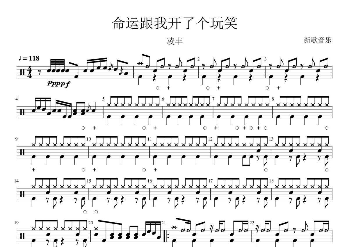 凌丰《命运跟我开了个玩笑》鼓谱 - 架子鼓谱