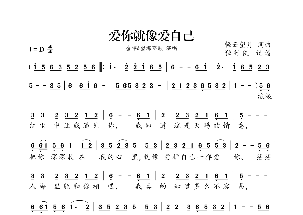 金宇&望海高歌《爱你就像爱自己》简谱