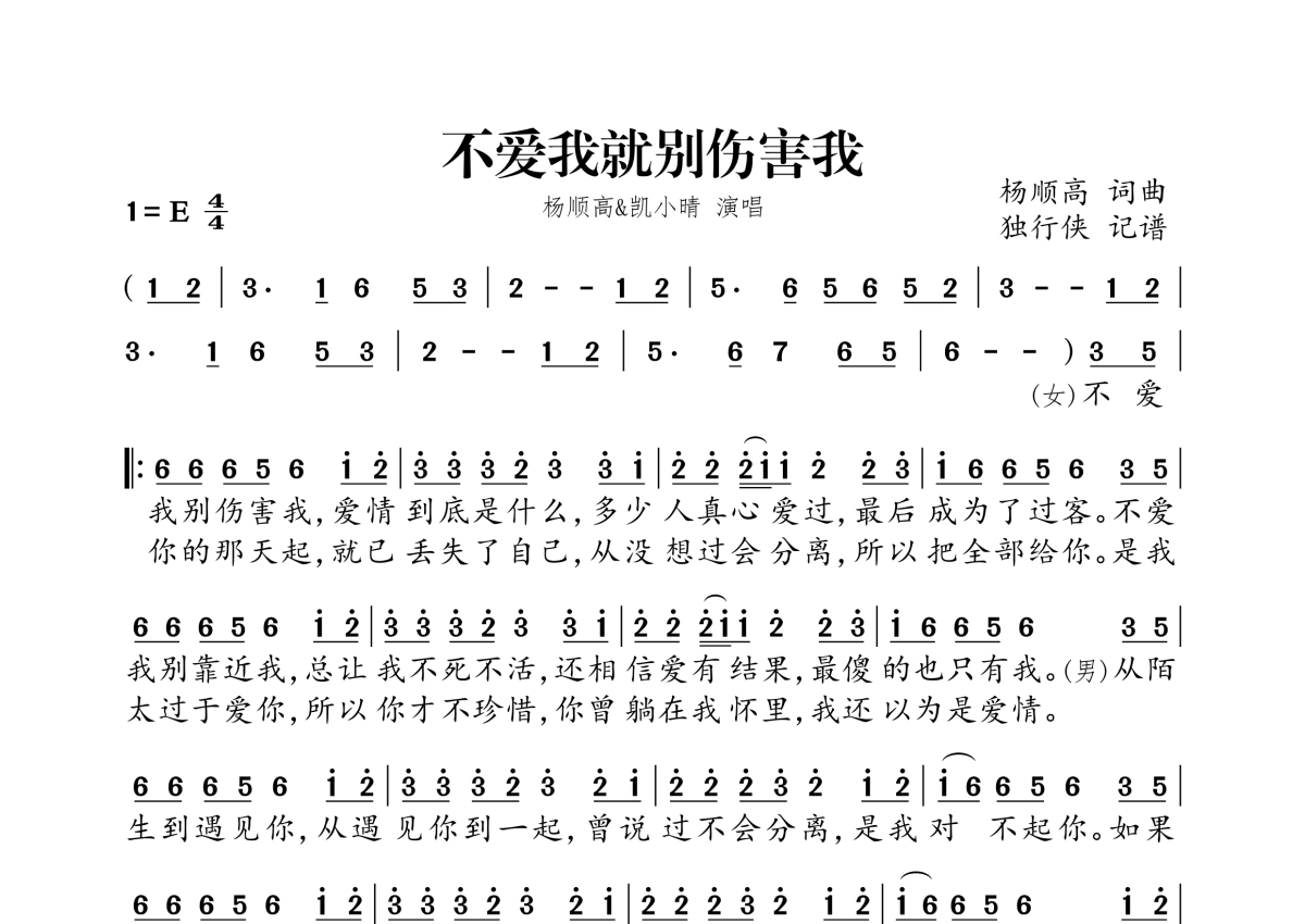 杨顺高&凯小晴《不爱我就别伤害我》简谱