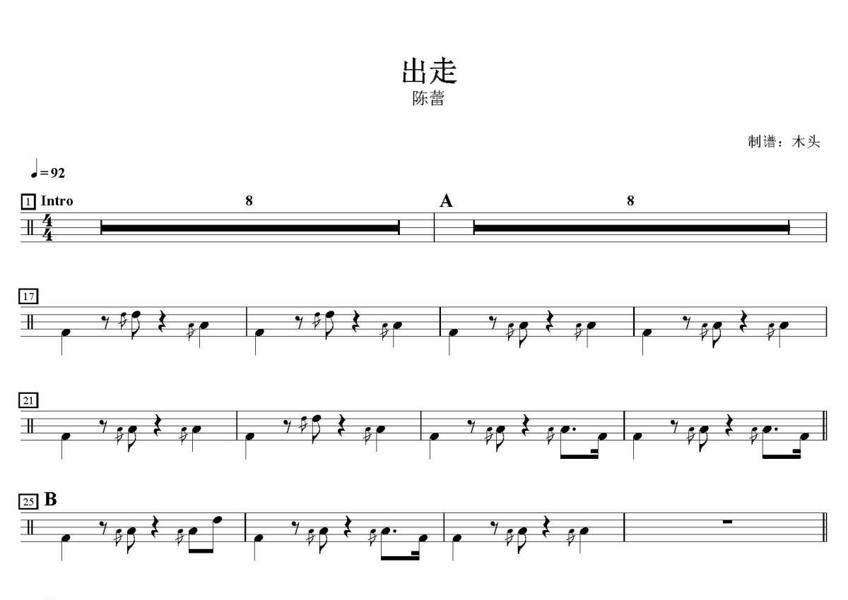 陈蕾《出走》鼓谱 - 架子鼓谱