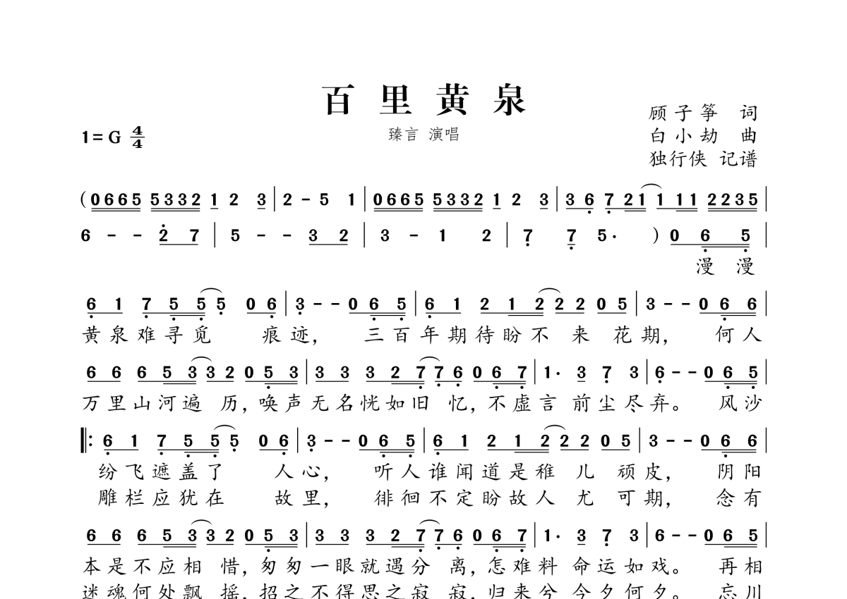 臻言《百里黄泉》简谱