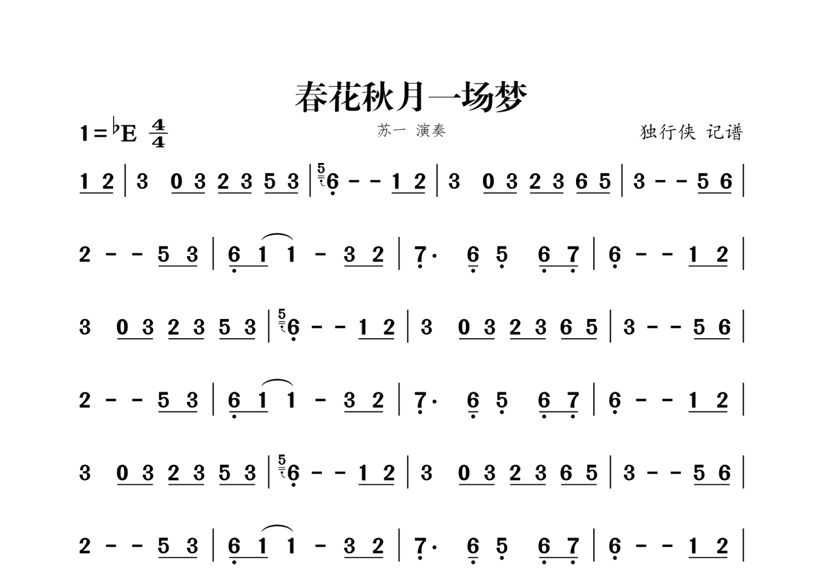 苏一《春花秋月一场梦》简谱