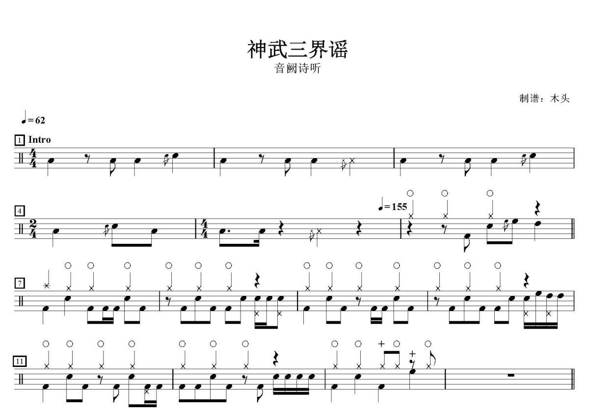音阙诗听《神武三界谣》鼓谱 - 架子鼓谱