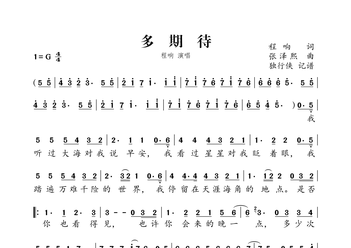 《多期待》是程响演唱的一首歌曲,拍号为4/4拍,这份简谱共有一张高清图谱,图谱由 @独行侠 编配上传。