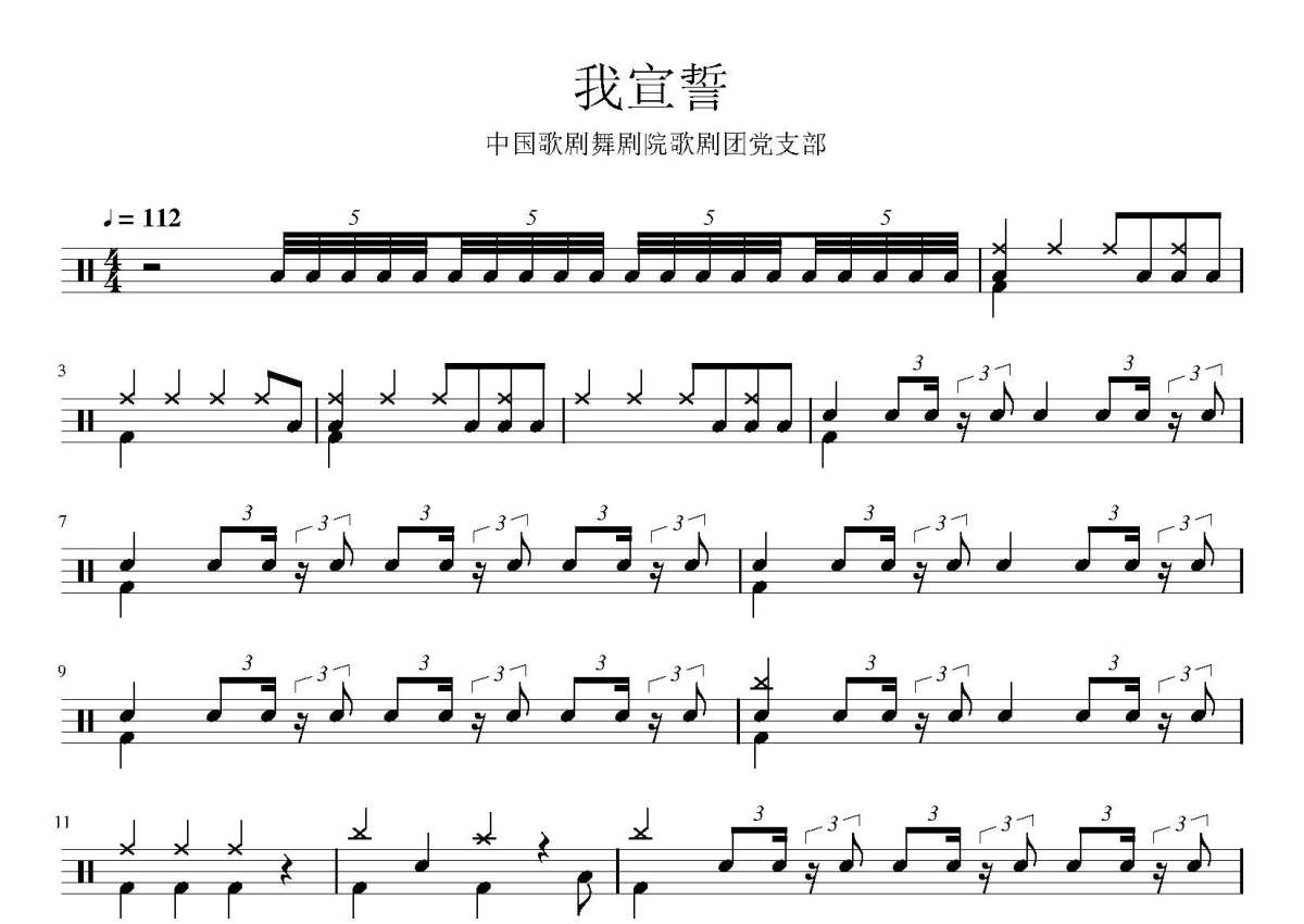 中国歌剧舞剧院歌剧团党支部《我宣誓》鼓谱 - 架子鼓谱