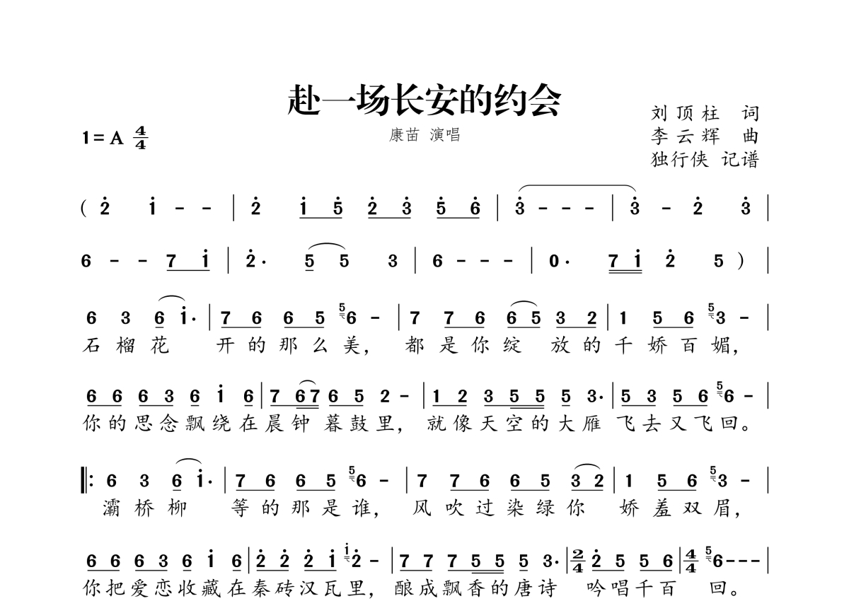 康苗《赴一场长安的约会》简谱