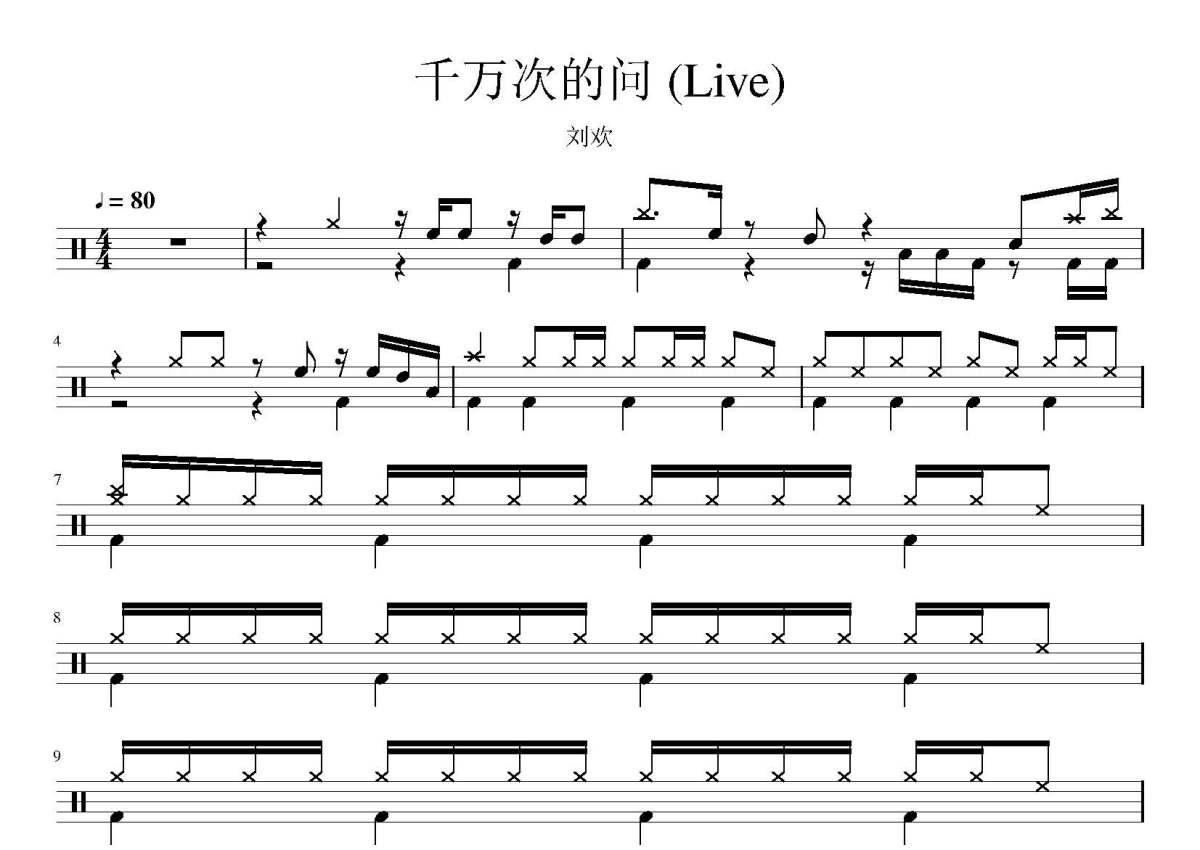 刘欢《千万次的问》鼓谱 - 架子鼓谱