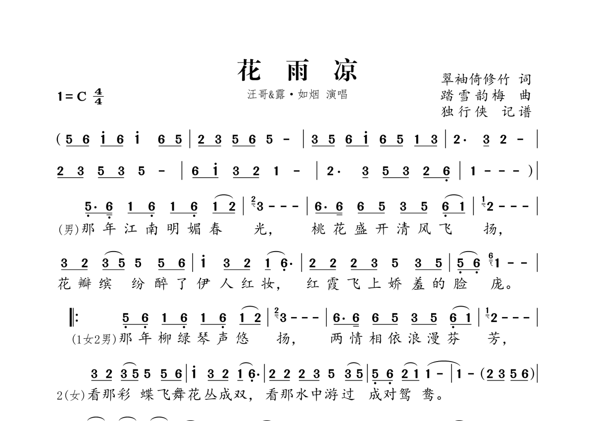 汪哥、露.如烟’《花雨凉》简谱