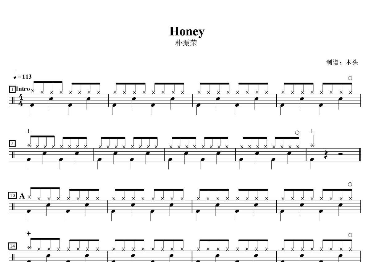 朴振荣《Honey》鼓谱 - 架子鼓谱