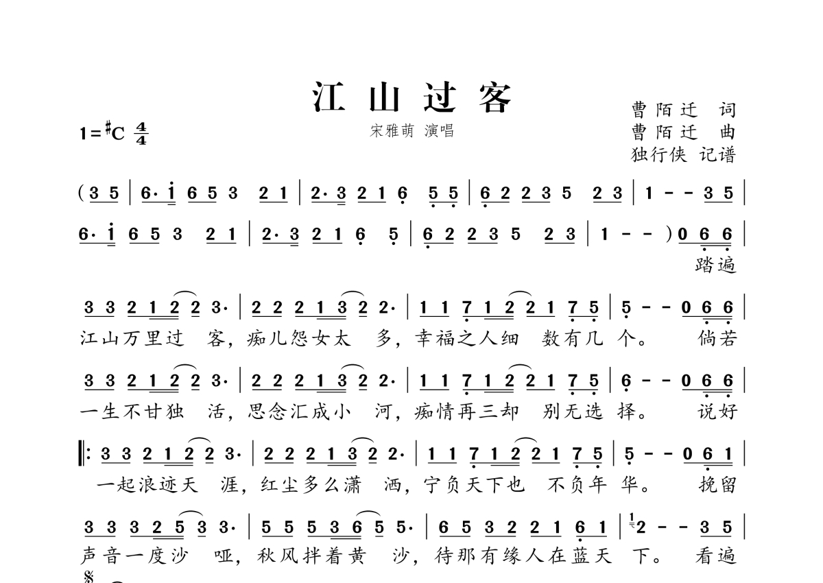 宋雅萌《江山过客》简谱