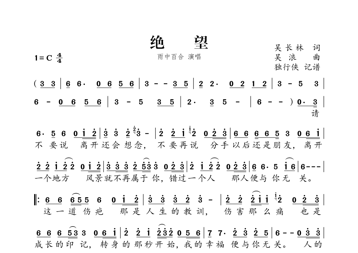 雨中百合《绝望》简谱